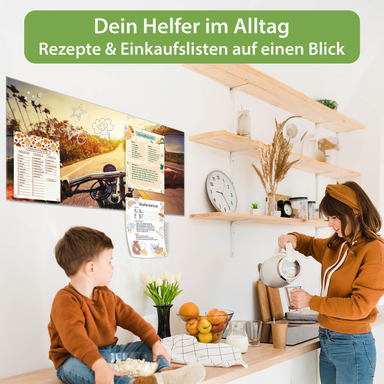 Die banjado Glas Magnettafel mit dem Motiv Motiv Easy Rider verbindet Funktionalität mit Stil. Sie ersetzt das Zettelchaos durch klare Strukturen und bringt dabei eine warme, natürliche Atmosphäre in Ihr Zuhause. Ob im Büro, in der Küche oder im Eingangsbereich - dieses Design-Board zieht Blicke an und sorgt für Ordnung mit Charakter.