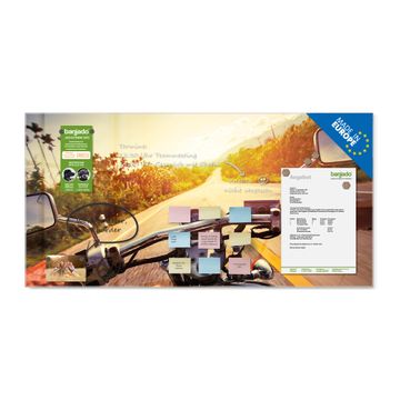Material: 4mm Sicherheitsglas mit Metallrückwand Eigenschaften: beschreibbar, magnetisch, kratzfest Maße: 120x60x0,6cm, 10,80kg schwer Motiv Nummer 12695 Easy Rider Zubehör: inklusive 4 Neodym-Magnete