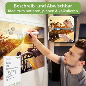 Auf der glatten Glasoberfläche lassen sich Termine, Rezepte oder Notizen ganz einfach mit Kreidestiften festhalten und rückstandslos entfernen. Starke Neodym-Magnete halten Ihre wichtigsten Erinnerungen sicher an Ort und Stelle. So entsteht Ihre ganz persönliche Ideenwand - jeden Tag neu.