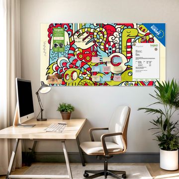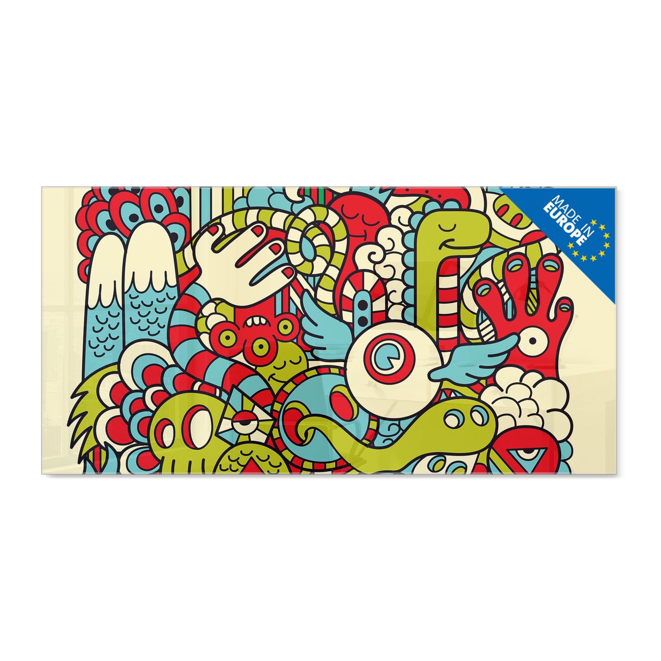 Material: 4mm Sicherheitsglas mit Metallrückwand Eigenschaften: beschreibbar, magnetisch, kratzfest Maße: 120x60x0,6cm, 10,80kg schwer Motiv Nummer 10400 Birds Worms Freaks Zubehör: inklusive 4 Neodym-Magnete