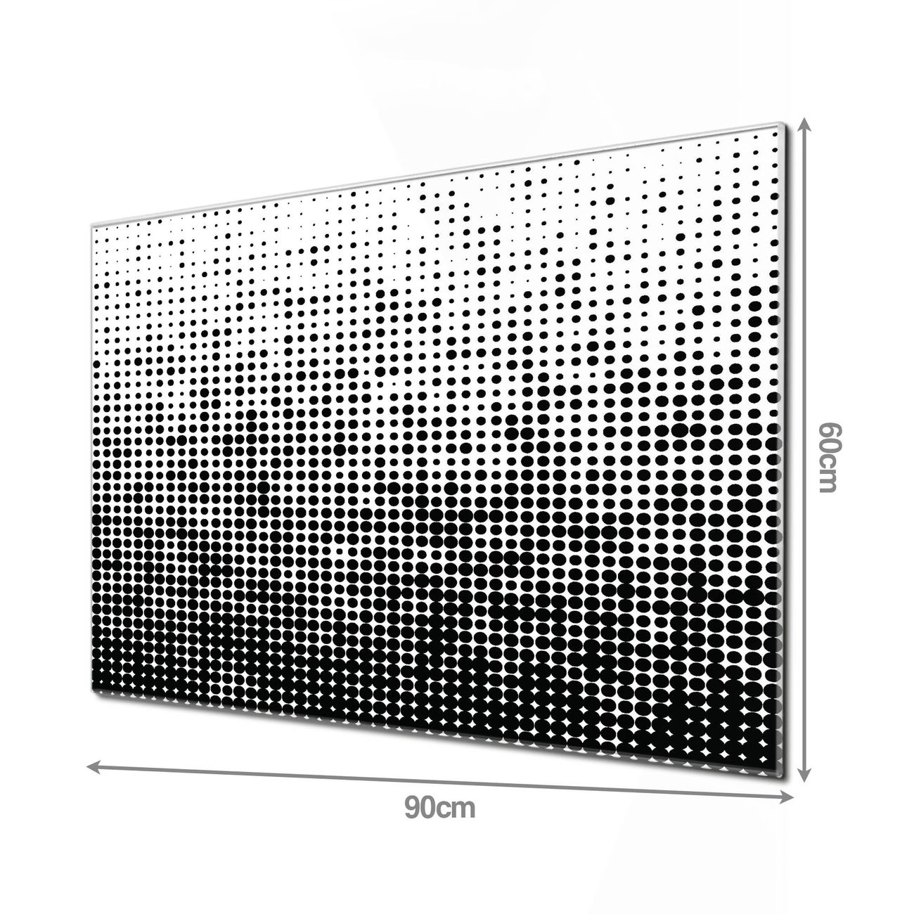 Material: 4mm Sicherheitsglas mit Metallrückwand Eigenschaften: beschreibbar, magnetisch, kratzfest Maße: 90x60x0,6cm, 8,10kg schwer Motiv Nummer 11451 Black or White Zubehör: inklusive 4 Neodym-Magnete