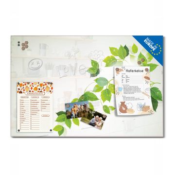 Auf der glatten Glasoberfläche lassen sich Termine, Rezepte oder Notizen ganz einfach mit Kreidestiften festhalten und rückstandslos entfernen. Starke Neodym-Magnete halten Ihre wichtigsten Erinnerungen sicher an Ort und Stelle. So entsteht Ihre ganz persönliche Ideenwand - jeden Tag neu.