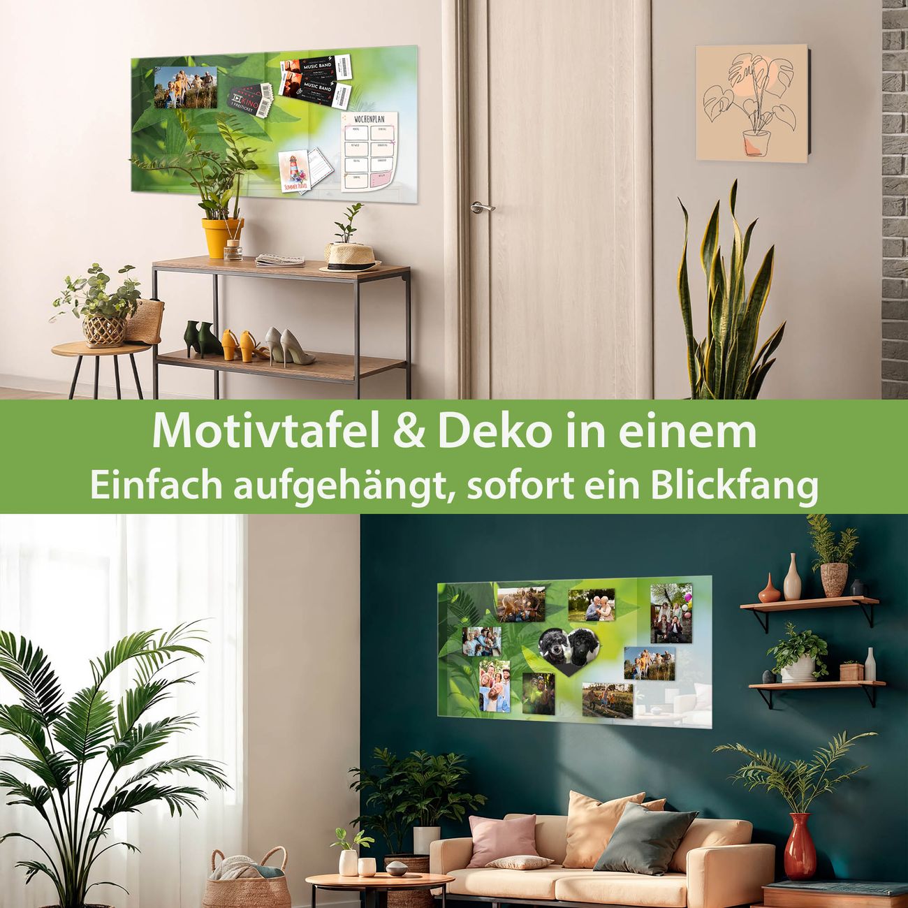 Die banjado Glas Magnettafel mit dem Motiv Motiv Blättertraum verbindet Funktionalität mit Stil. Sie ersetzt das Zettelchaos durch klare Strukturen und bringt dabei eine warme, natürliche Atmosphäre in Ihr Zuhause. Ob im Büro, in der Küche oder im Eingangsbereich - dieses Design-Board zieht Blicke an und sorgt für Ordnung mit Charakter.