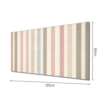 Material: 4mm Sicherheitsglas mit Metallrückwand Eigenschaften: beschreibbar, magnetisch, kratzfest Maße: 120x60x0,6cm, 10,80kg schwer Motiv Nummer 12139 Blasse Streifen Zubehör: inklusive 4 Neodym-Magnete