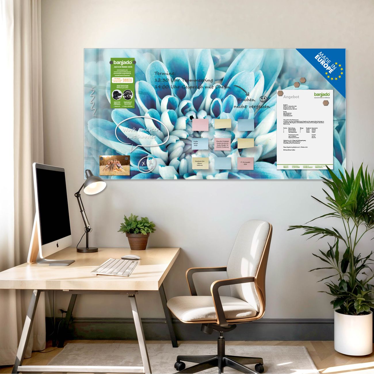Glas Magnettafel im Querformat Motiv Blaue Blüten