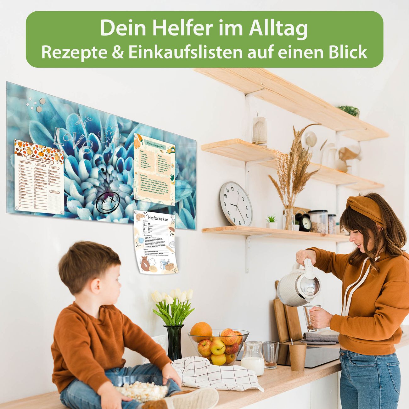 Ein Stück Design, das Ihren Alltag organisiert. Schreiben, heften, inspirieren - alles an einem Ort. Qualität, die man spürt. Montage leicht gemacht. Handwerk mit Herz - veredelt in Sachsen. Einzigartiges Design mit Motiv Motiv Blaue Blüten Beschreibbare Glasoberfläche, leicht zu reinigen Starke Magnetkraft durch Stahlrückwand Inklusive 4 Neodym-Magneten Flexible Montageoptionen Handveredelt in Sachsen - Qualität, die bleibt