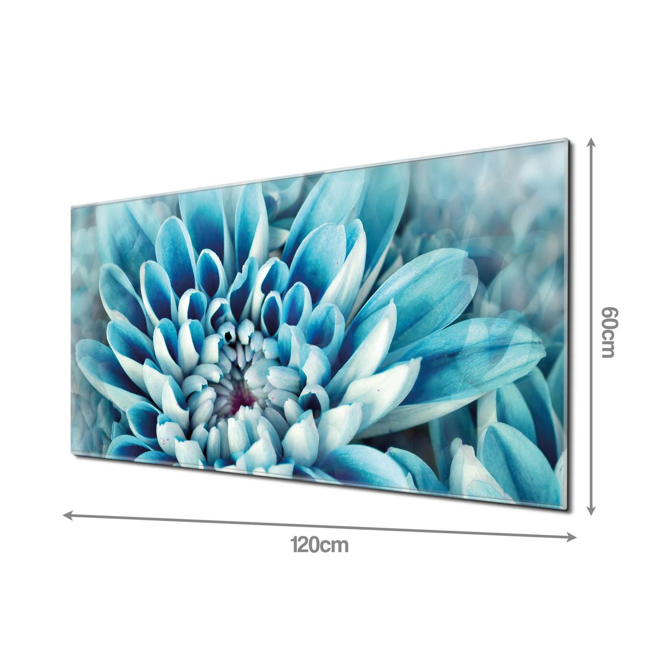Material: 4mm Sicherheitsglas mit Metallrückwand Eigenschaften: beschreibbar, magnetisch, kratzfest Maße: 120x60x0,6cm, 10,80kg schwer Motiv Nummer 11444 Blaue Blüten Zubehör: inklusive 4 Neodym-Magnete