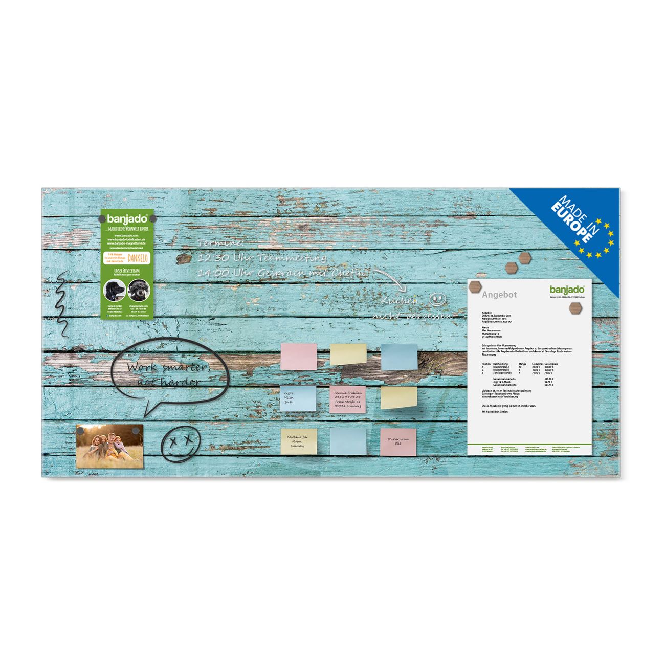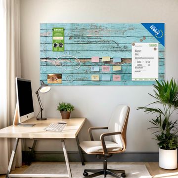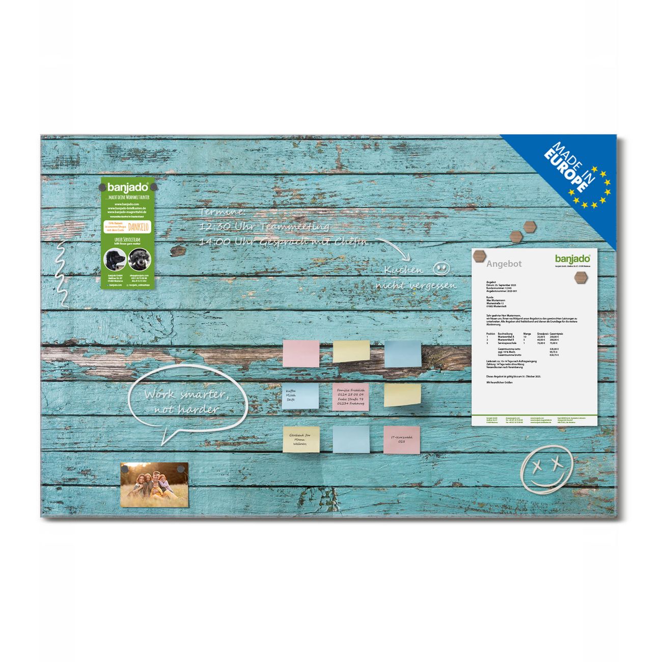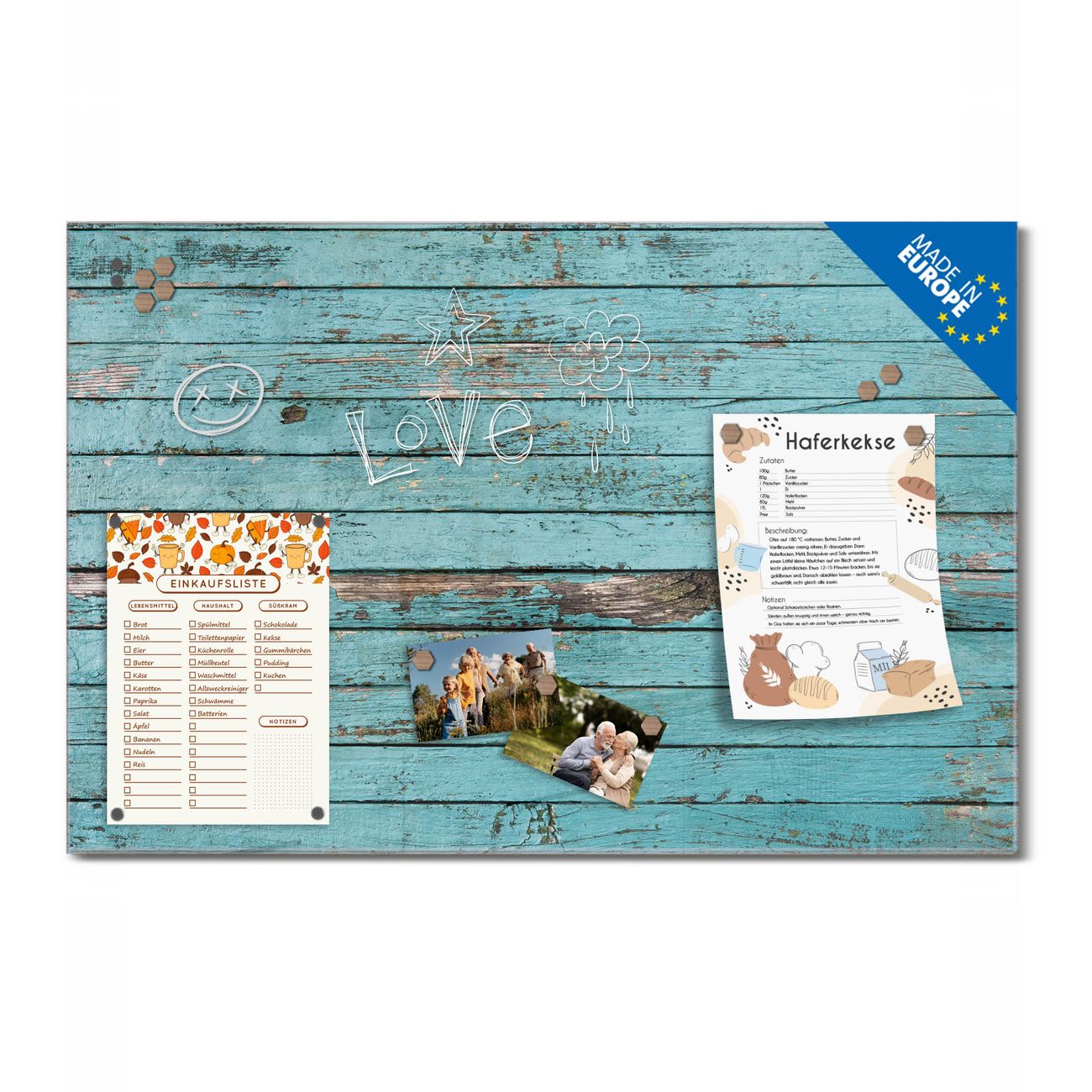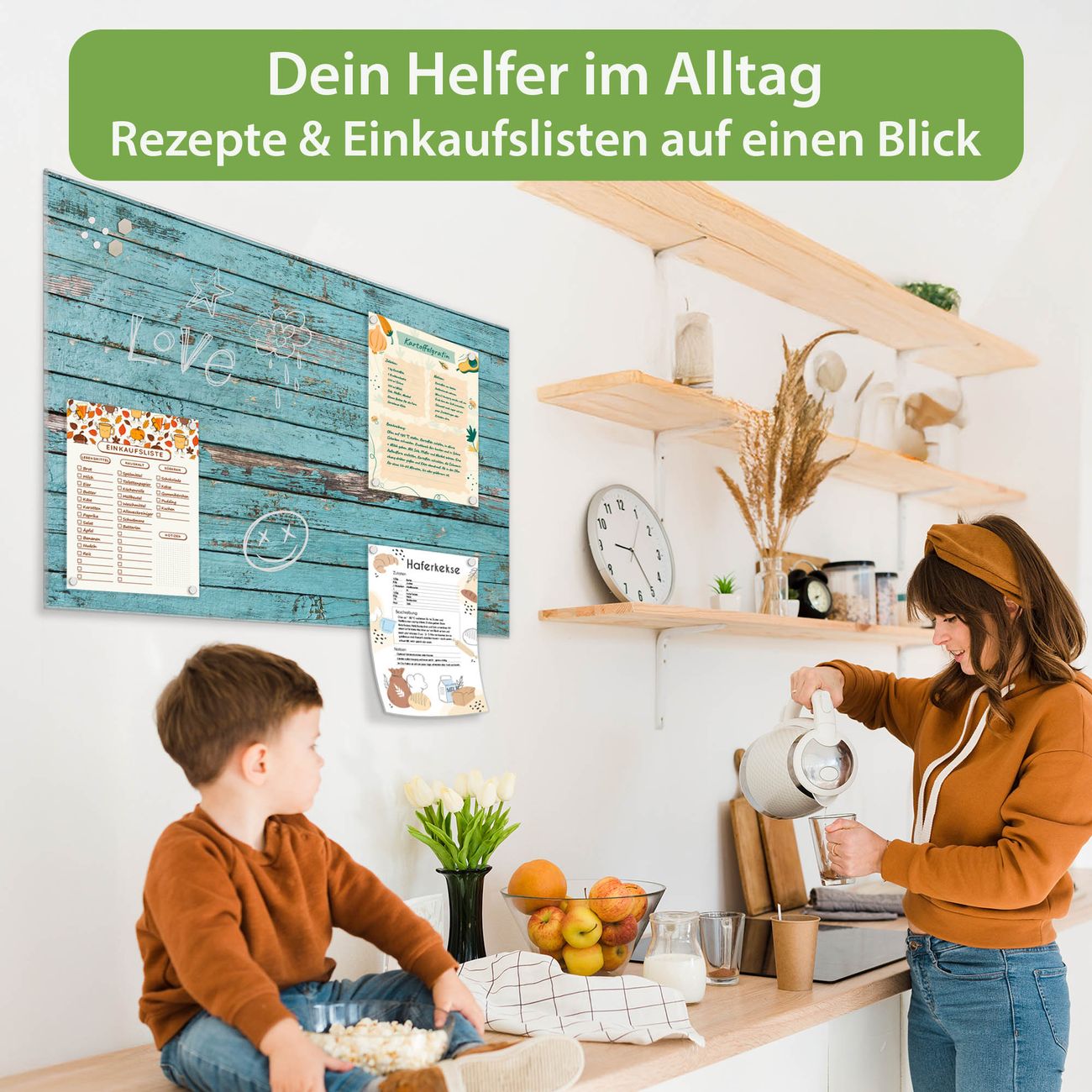 Ein Stück Design, das Ihren Alltag organisiert. Schreiben, heften, inspirieren - alles an einem Ort. Qualität, die man spürt. Montage leicht gemacht. Handwerk mit Herz - veredelt in Sachsen. Einzigartiges Design mit Motiv Motiv Blaue Holzlatten Beschreibbare Glasoberfläche, leicht zu reinigen Starke Magnetkraft durch Stahlrückwand Inklusive 4 Neodym-Magneten Flexible Montageoptionen Handveredelt in Sachsen - Qualität, die bleibt