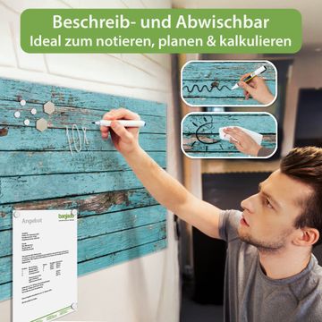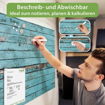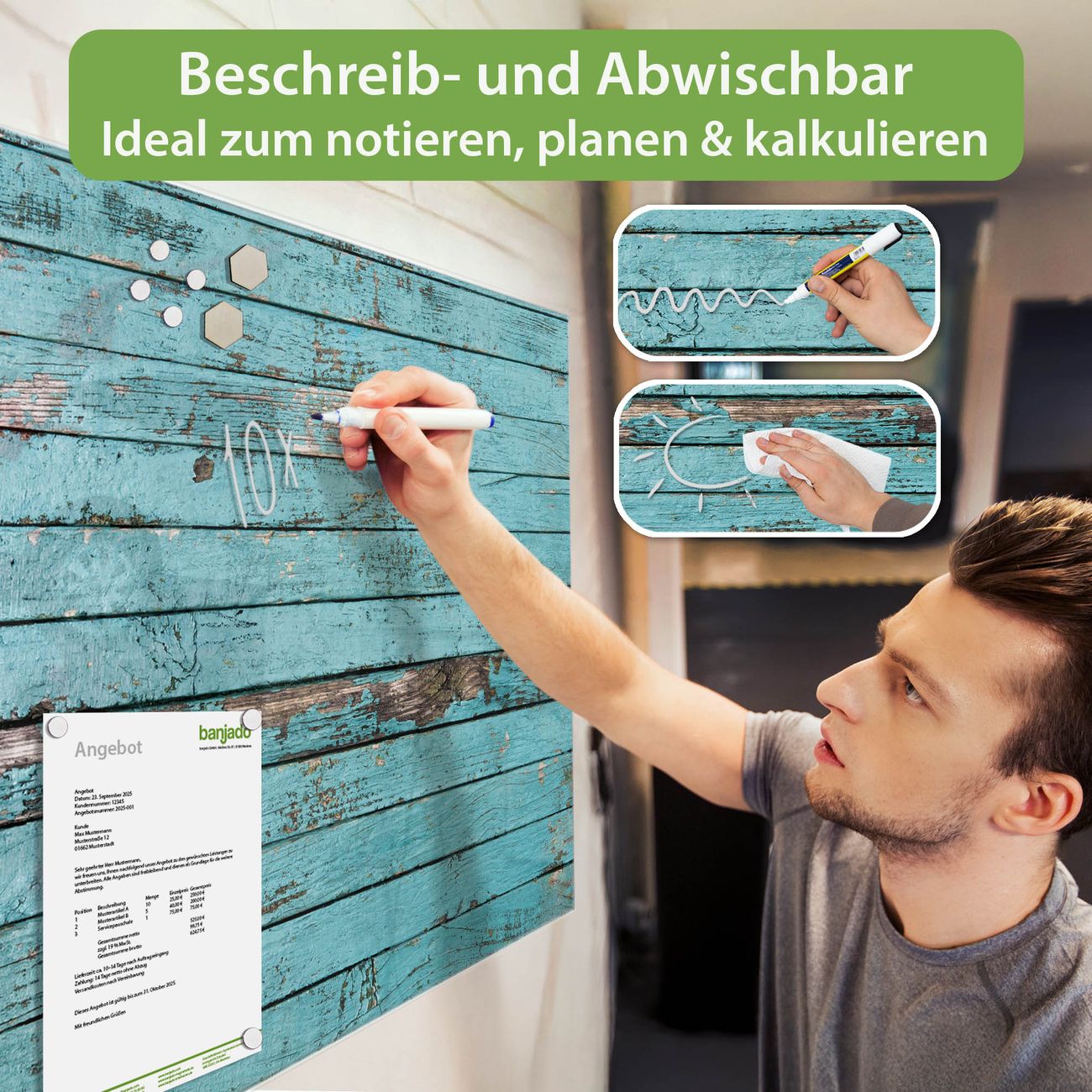 Die banjado Glas Magnettafel mit dem Motiv Motiv Blaue Holzlatten verbindet Funktionalität mit Stil. Sie ersetzt das Zettelchaos durch klare Strukturen und bringt dabei eine warme, natürliche Atmosphäre in Ihr Zuhause. Ob im Büro, in der Küche oder im Eingangsbereich - dieses Design-Board zieht Blicke an und sorgt für Ordnung mit Charakter.