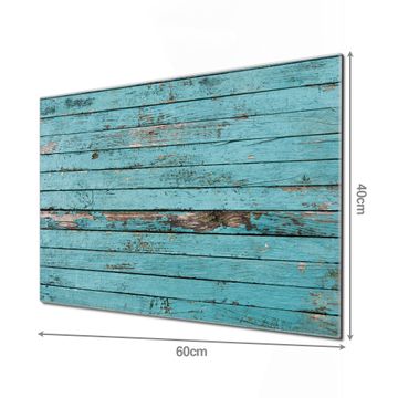 Material: 4mm Sicherheitsglas mit Metallrückwand Eigenschaften: beschreibbar, magnetisch, kratzfest Maße: 60x40x0,6cm, 3,6kg schwer Motiv Nummer 10627 Blaue Holzlatten Zubehör: inklusive 4 Neodym-Magnete