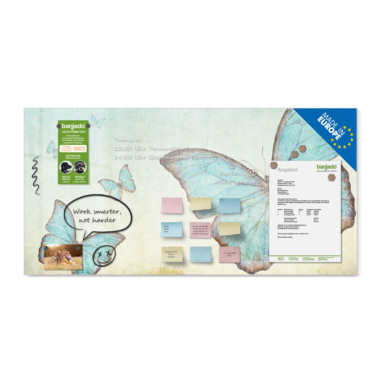 Glas Magnettafel im Querformat Motiv Blaue Schmetterlinge