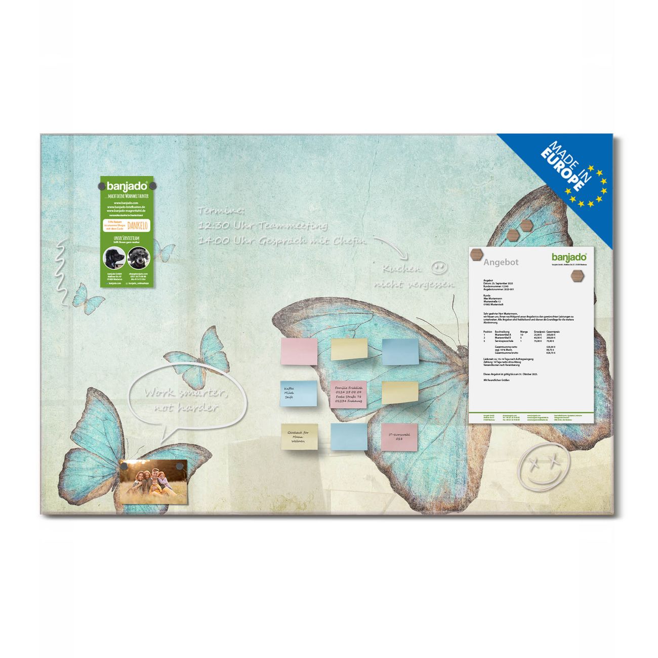 Glas Magnettafel im Querformat Motiv Blaue Schmetterlinge