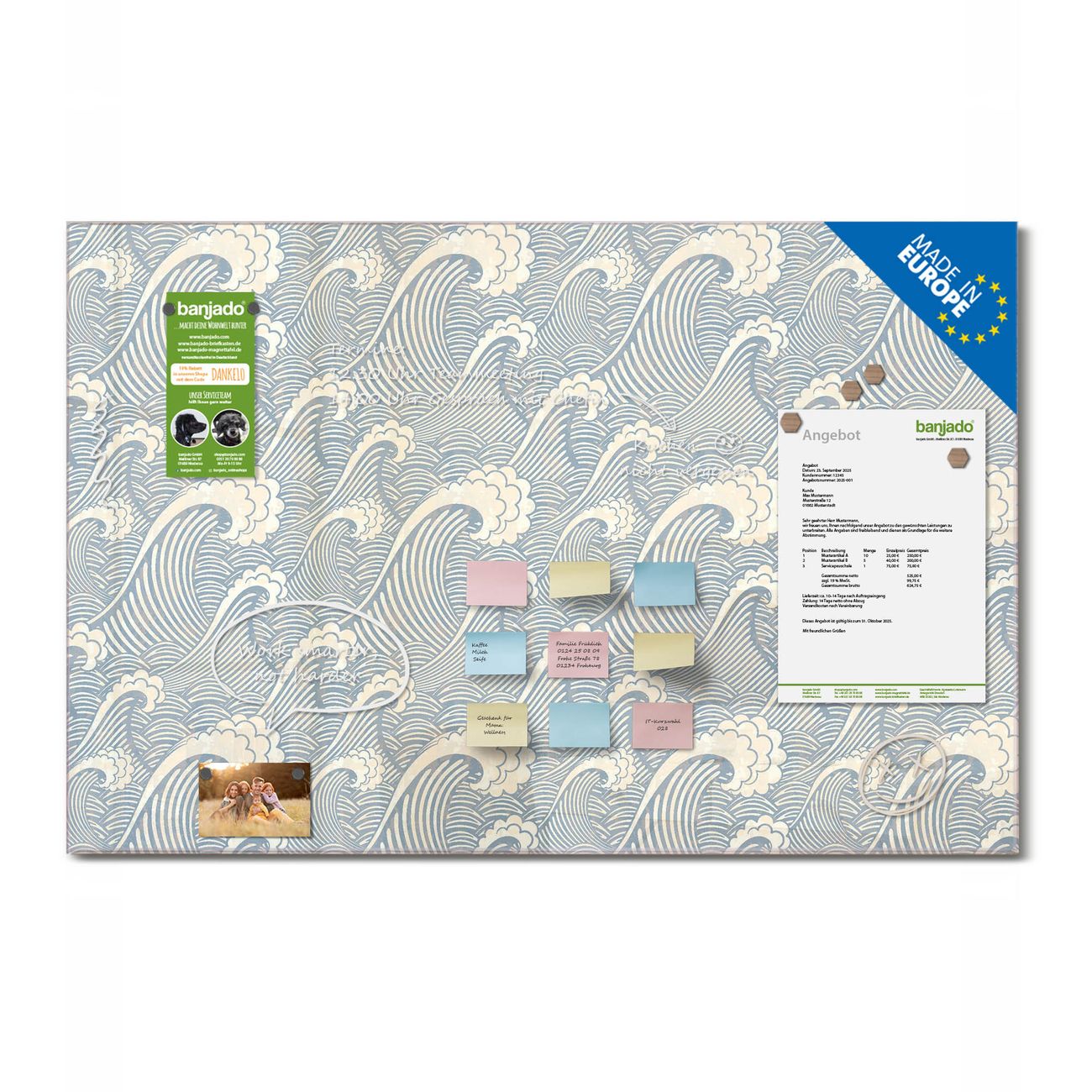 Glas Magnettafel im Querformat Motiv Blaue Wellen