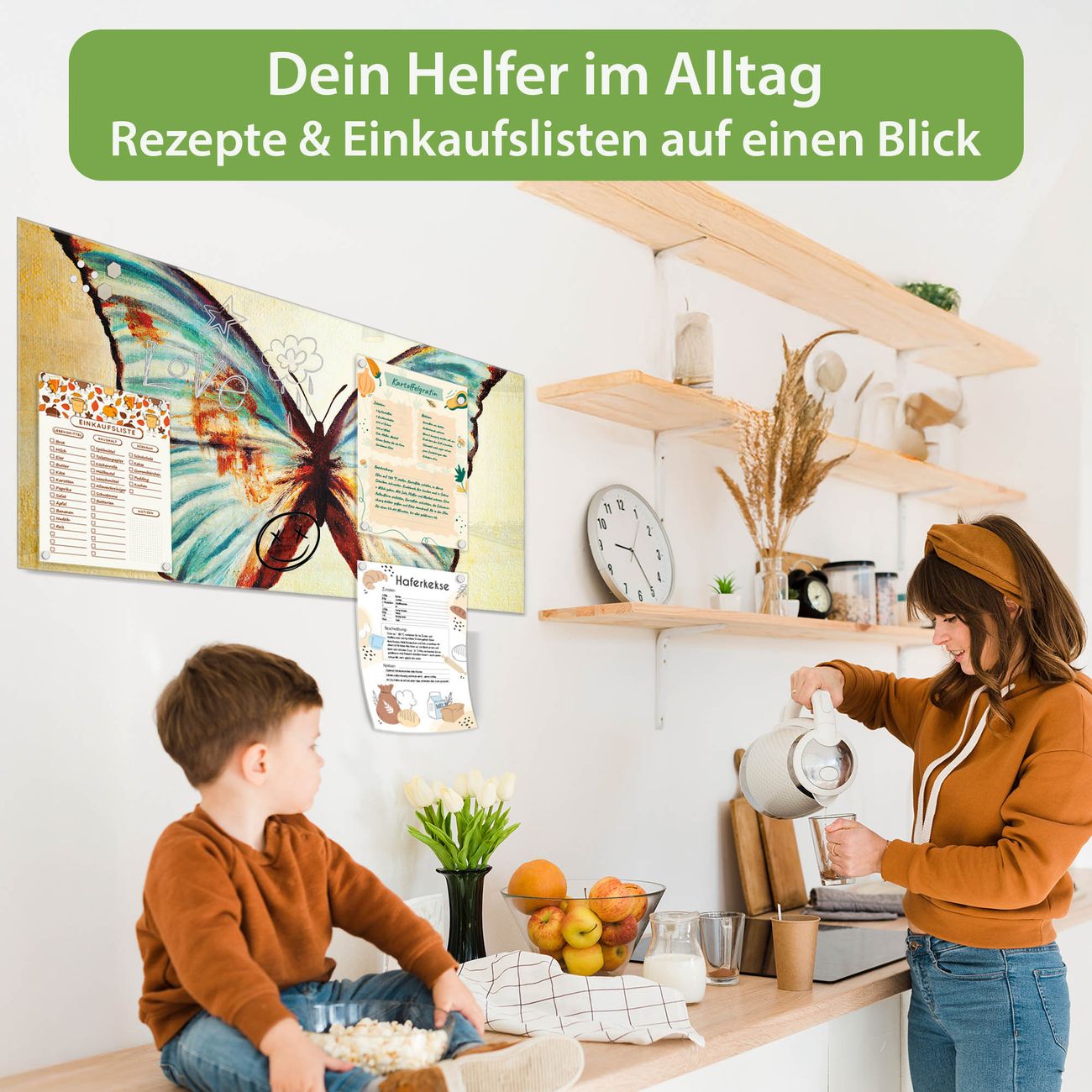 Ein Stück Design, das Ihren Alltag organisiert. Schreiben, heften, inspirieren - alles an einem Ort. Qualität, die man spürt. Montage leicht gemacht. Handwerk mit Herz - veredelt in Sachsen. Einzigartiges Design mit Motiv Motiv Blauer Falter Beschreibbare Glasoberfläche, leicht zu reinigen Starke Magnetkraft durch Stahlrückwand Inklusive 4 Neodym-Magneten Flexible Montageoptionen Handveredelt in Sachsen - Qualität, die bleibt