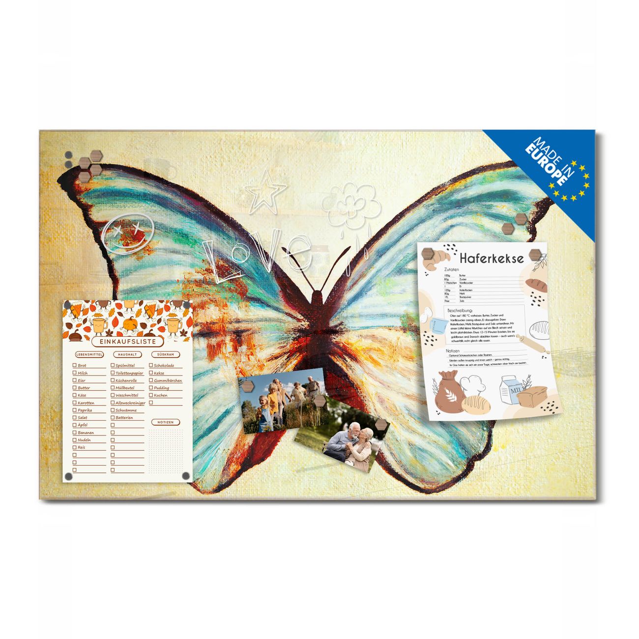 Ein Stück Design, das Ihren Alltag organisiert. Schreiben, heften, inspirieren - alles an einem Ort. Qualität, die man spürt. Montage leicht gemacht. Handwerk mit Herz - veredelt in Sachsen. Einzigartiges Design mit Motiv Motiv Blauer Falter Beschreibbare Glasoberfläche, leicht zu reinigen Starke Magnetkraft durch Stahlrückwand Inklusive 4 Neodym-Magneten Flexible Montageoptionen Handveredelt in Sachsen - Qualität, die bleibt
