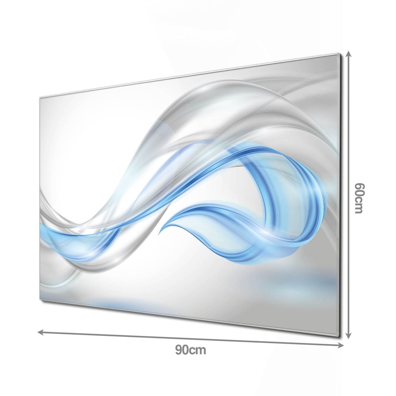 Material: 4mm Sicherheitsglas mit Metallrückwand Eigenschaften: beschreibbar, magnetisch, kratzfest Maße: 90x60x0,6cm, 8,10kg schwer Motiv Nummer 10736 Blauer Schleier Zubehör: inklusive 4 Neodym-Magnete