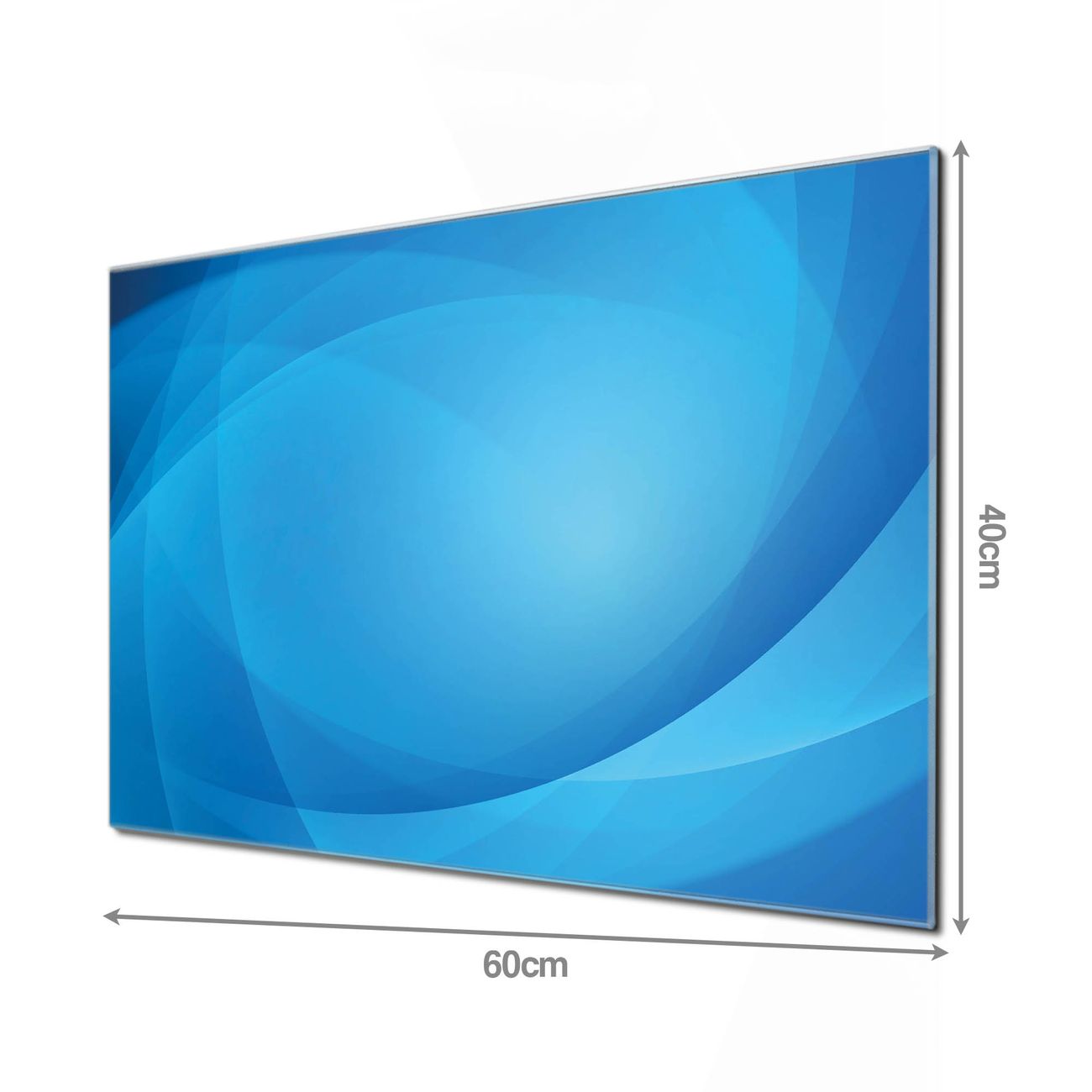Material  4mm Sicherheitsglas mit Metallrückwand Eigenschaften  beschreibbar, magnetisch, kratzfest Maße  60x40x0,6cm, 3,6kg schwer Motiv  Nummer 10905 Blaues Licht Zubehör  inklusive 4 Neodym-Magnete
