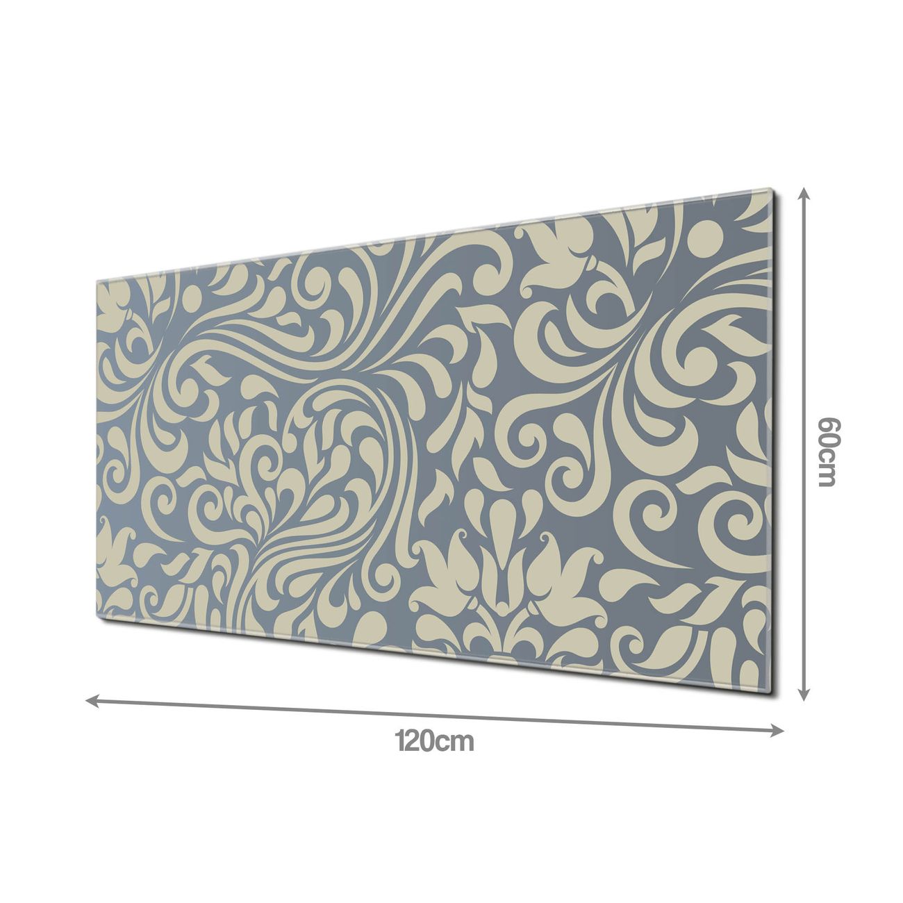 Material: 4mm Sicherheitsglas mit Metallrückwand Eigenschaften: beschreibbar, magnetisch, kratzfest Maße: 120x60x0,6cm, 10,80kg schwer Motiv Nummer 10917 Blaues Ornament Zubehör: inklusive 4 Neodym-Magnete