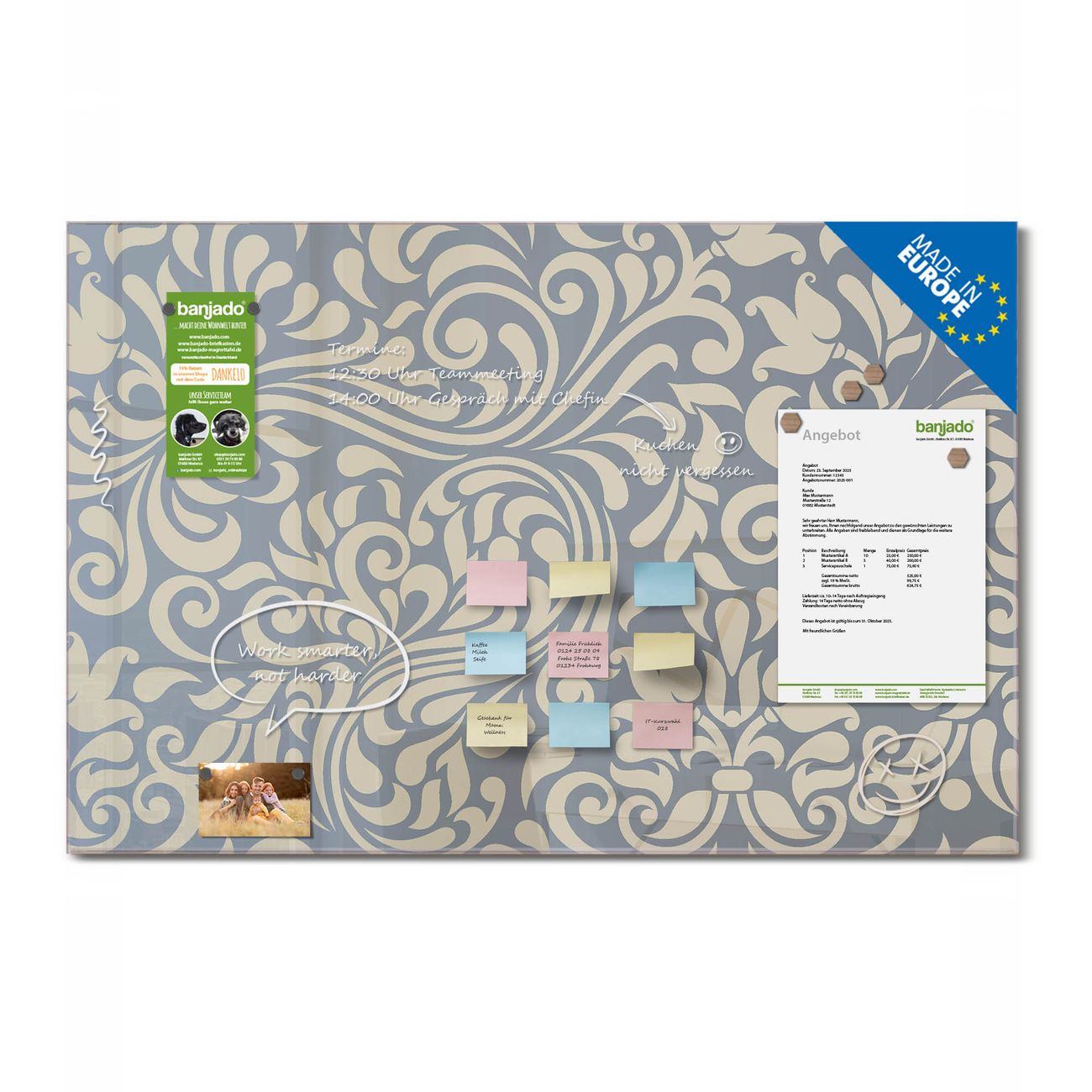 Glas Magnettafel im Querformat Motiv Blaues Ornament