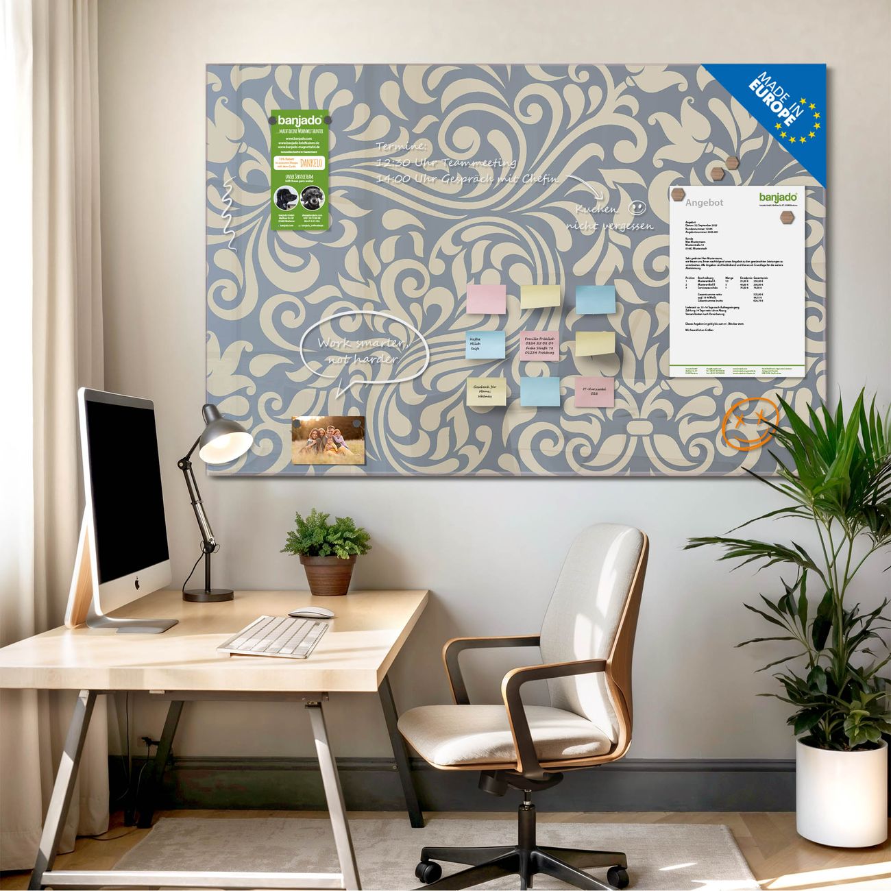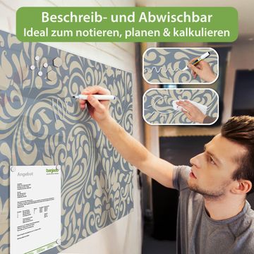 Die banjado Glas Magnettafel mit dem Motiv Motiv Blaues Ornament verbindet Funktionalität mit Stil. Sie ersetzt das Zettelchaos durch klare Strukturen und bringt dabei eine warme, natürliche Atmosphäre in Ihr Zuhause. Ob im Büro, in der Küche oder im Eingangsbereich - dieses Design-Board zieht Blicke an und sorgt für Ordnung mit Charakter.