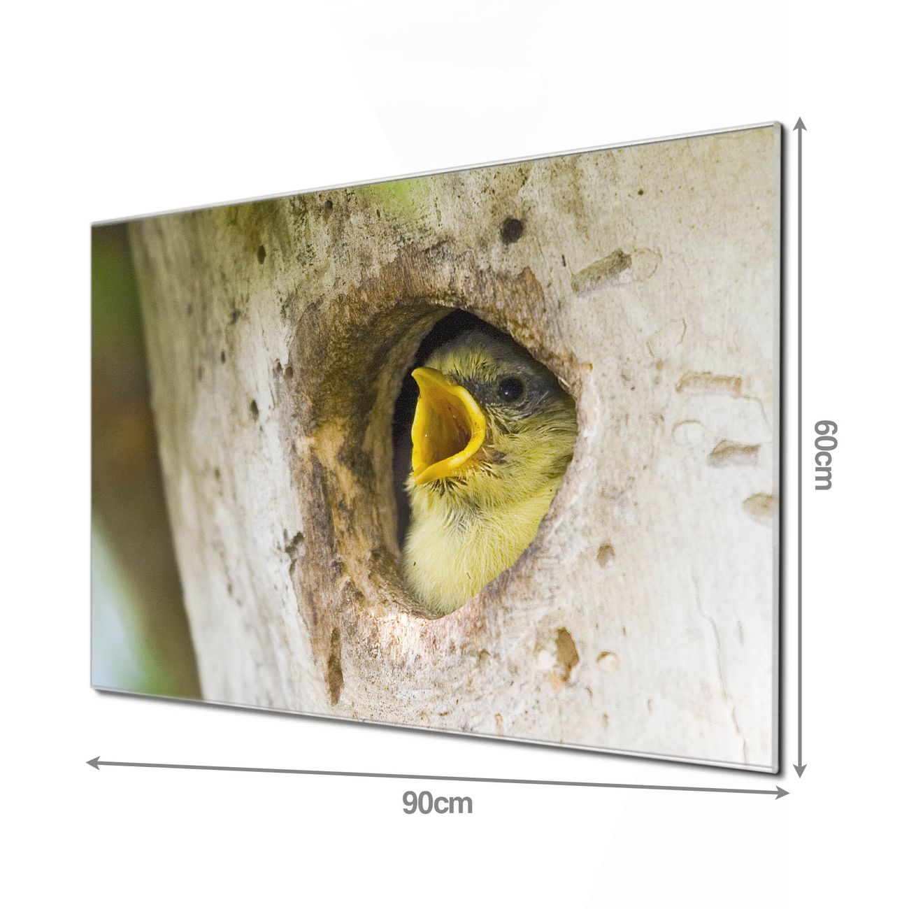 Material: 4mm Sicherheitsglas mit Metallrückwand Eigenschaften: beschreibbar, magnetisch, kratzfest Maße: 90x60x0,6cm, 8,10kg schwer Motiv Nummer 10520 Blaumeise Zubehör: inklusive 4 Neodym-Magnete