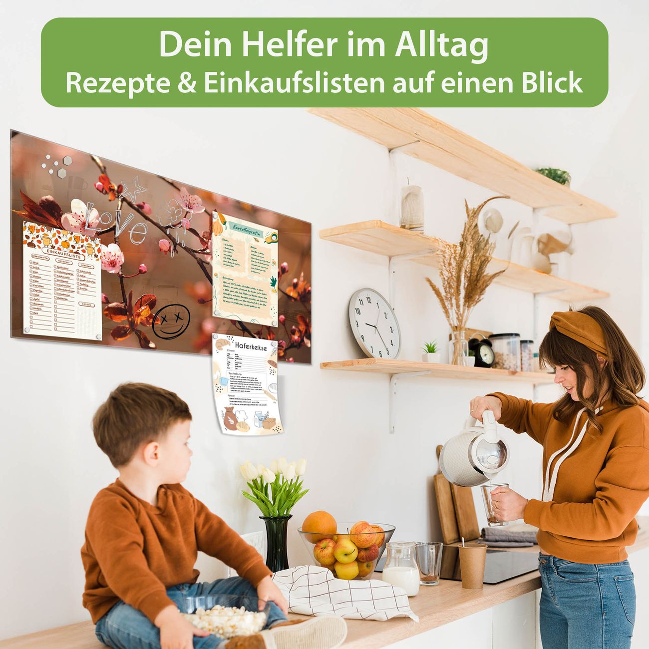 Ein Stück Design, das Ihren Alltag organisiert. Schreiben, heften, inspirieren - alles an einem Ort. Qualität, die man spürt. Montage leicht gemacht. Handwerk mit Herz - veredelt in Sachsen. Einzigartiges Design mit Motiv Motiv Blühender Kirschzweig Beschreibbare Glasoberfläche, leicht zu reinigen Starke Magnetkraft durch Stahlrückwand Inklusive 4 Neodym-Magneten Flexible Montageoptionen Handveredelt in Sachsen - Qualität, die bleibt