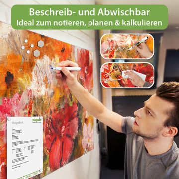 Die banjado Glas Magnettafel mit dem Motiv Motiv Fallende Blumen verbindet Funktionalität mit Stil. Sie ersetzt das Zettelchaos durch klare Strukturen und bringt dabei eine warme, natürliche Atmosphäre in Ihr Zuhause. Ob im Büro, in der Küche oder im Eingangsbereich - dieses Design-Board zieht Blicke an und sorgt für Ordnung mit Charakter.