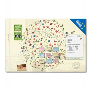 Material: 4mm Sicherheitsglas mit Metallrückwand Eigenschaften: beschreibbar, magnetisch, kratzfest Maße: 120x80x0,6cm, 14,40kg schwer Motiv Nummer 10755 Blumenreigen Zubehör: inklusive 4 Neodym-Magnete