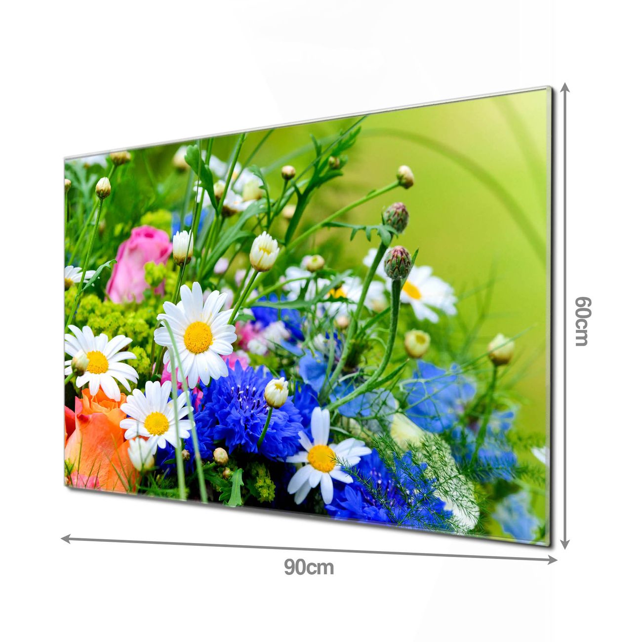 Material: 4mm Sicherheitsglas mit Metallrückwand Eigenschaften: beschreibbar, magnetisch, kratzfest Maße: 90x60x0,6cm, 8,10kg schwer Motiv Nummer 10444 Blumenstrauß Zubehör: inklusive 4 Neodym-Magnete