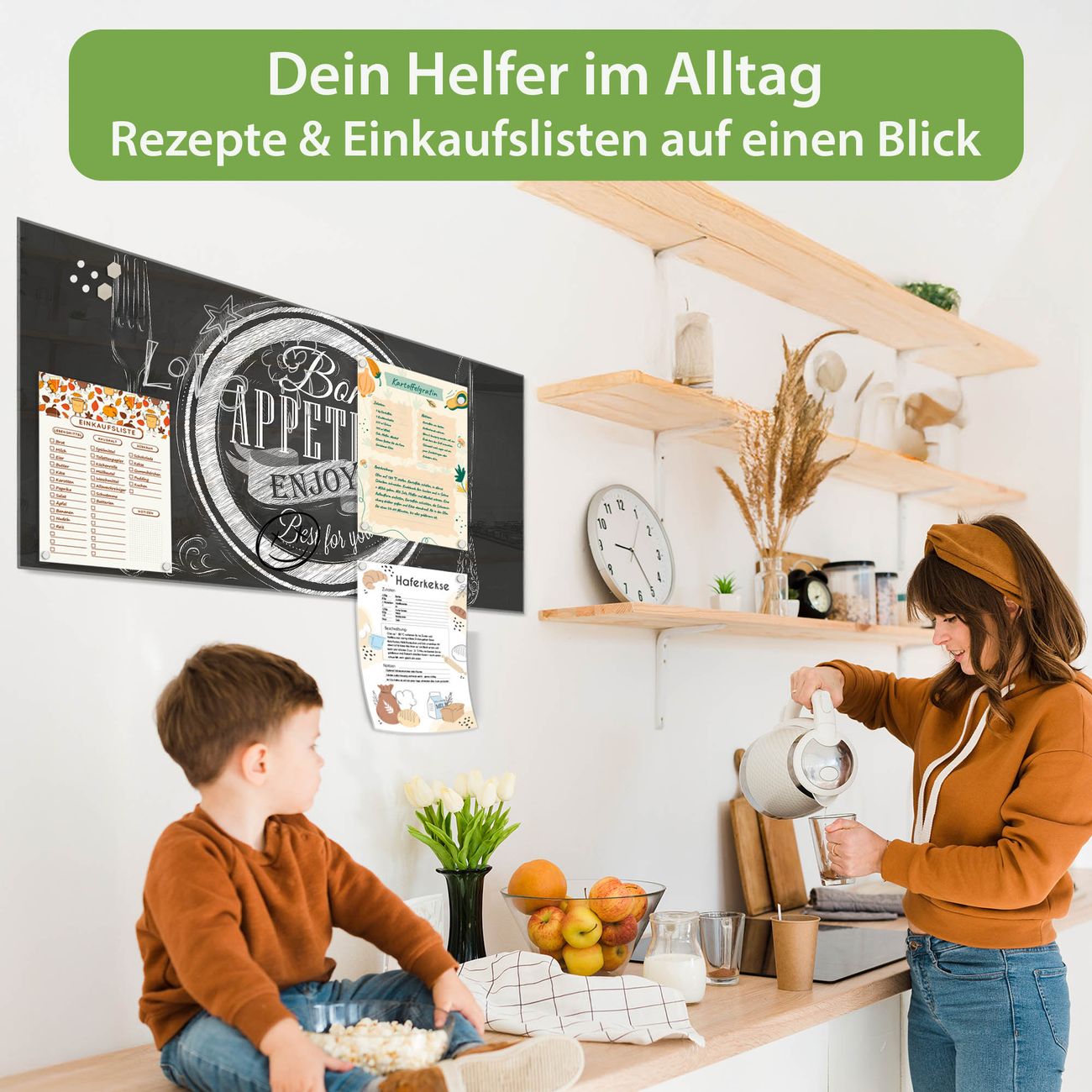 Ein Stück Design, das Ihren Alltag organisiert. Schreiben, heften, inspirieren - alles an einem Ort. Qualität, die man spürt. Montage leicht gemacht. Handwerk mit Herz - veredelt in Sachsen. Einzigartiges Design mit Motiv Motiv Bon Appetit Beschreibbare Glasoberfläche, leicht zu reinigen Starke Magnetkraft durch Stahlrückwand Inklusive 4 Neodym-Magneten Flexible Montageoptionen Handveredelt in Sachsen - Qualität, die bleibt