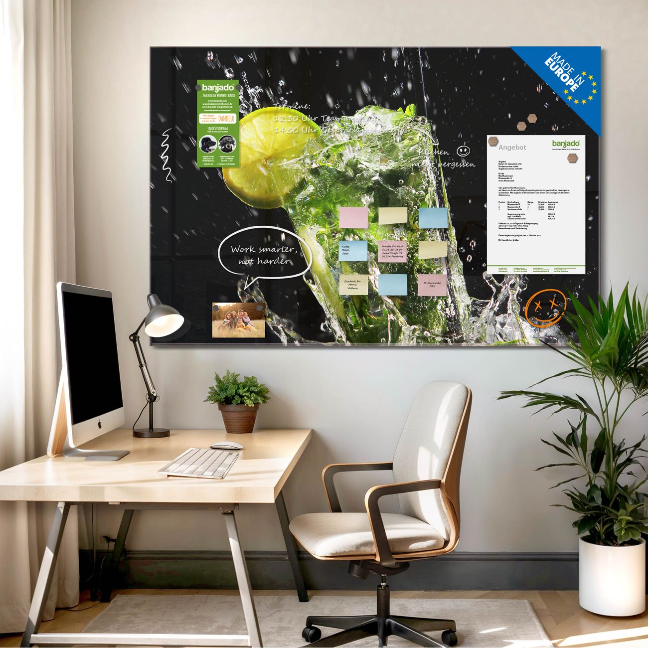 Die banjado Glas Magnettafel mit dem Motiv Motiv Brasilianischer Cocktail verbindet Funktionalität mit Stil. Sie ersetzt das Zettelchaos durch klare Strukturen und bringt dabei eine warme, natürliche Atmosphäre in Ihr Zuhause. Ob im Büro, in der Küche oder im Eingangsbereich - dieses Design-Board zieht Blicke an und sorgt für Ordnung mit Charakter.