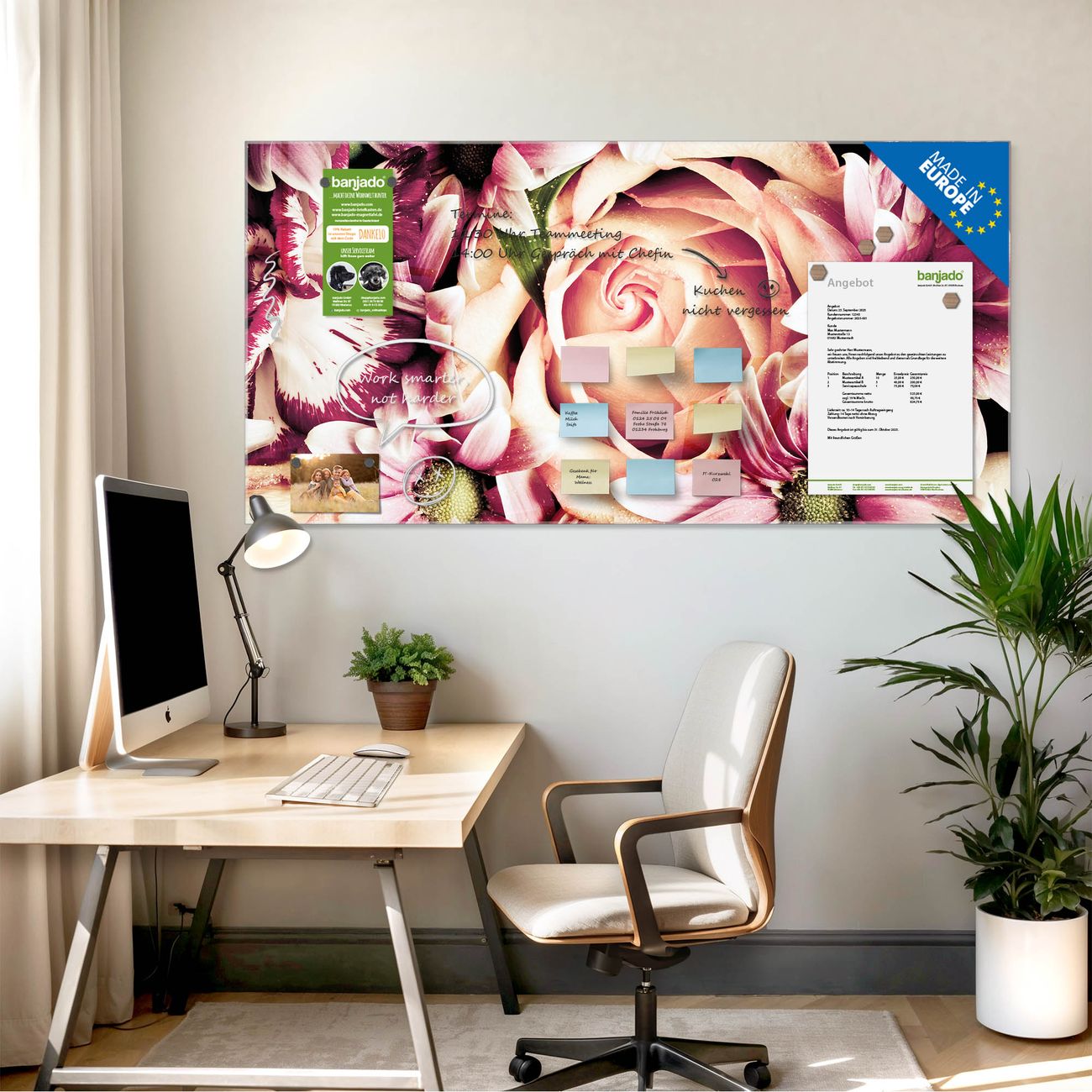 Die banjado Glas Magnettafel mit dem Motiv Motiv Brautstrauss verbindet Funktionalität mit Stil. Sie ersetzt das Zettelchaos durch klare Strukturen und bringt dabei eine warme, natürliche Atmosphäre in Ihr Zuhause. Ob im Büro, in der Küche oder im Eingangsbereich - dieses Design-Board zieht Blicke an und sorgt für Ordnung mit Charakter.