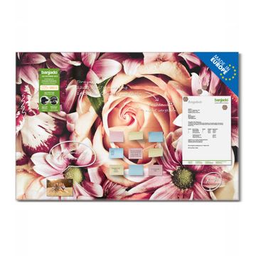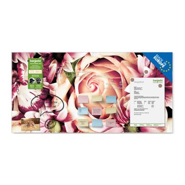 Material: 4mm Sicherheitsglas mit Metallrückwand Eigenschaften: beschreibbar, magnetisch, kratzfest Maße: 120x60x0,6cm, 10,80kg schwer Motiv Nummer 12786 Brautstrauss Zubehör: inklusive 4 Neodym-Magnete