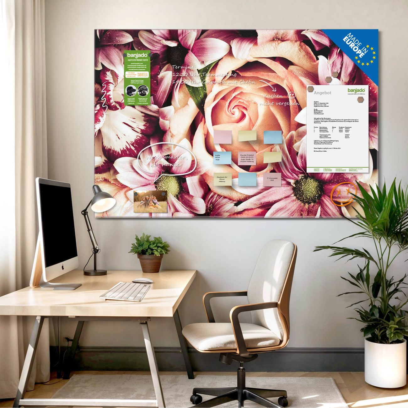 Jede Glas Magnettafel wird in unserer Werkstatt von Hand gefertigt und sorgfältig geprüft. So erhalten Sie ein echtes Qualitätsprodukt, das Funktion und Ästhetik perfekt vereint.?? Warum banjado?