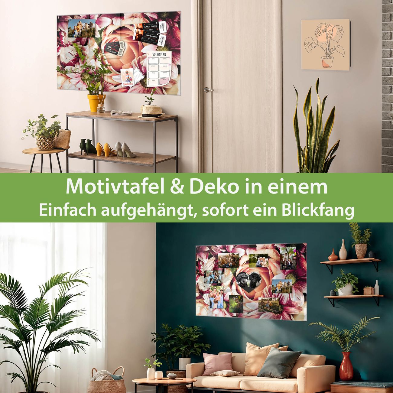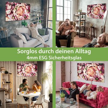 Material: 4mm Sicherheitsglas mit Metallrückwand Eigenschaften: beschreibbar, magnetisch, kratzfest Maße: 75x50x0,6cm, 5,63kg schwer Motiv Nummer 12786 Brautstrauss Zubehör: inklusive 4 Neodym-Magnete