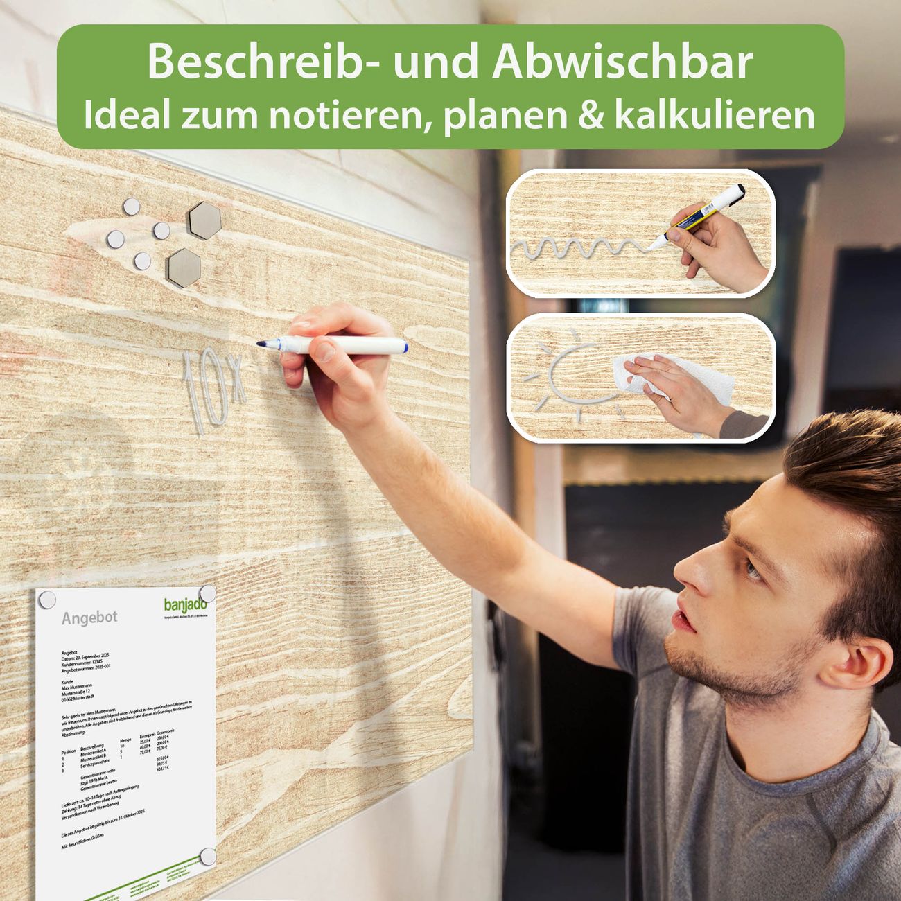 Bitte beachten Sie, dass ausschliessliche spezielle Magnete an der Glastafel haften. Wir empfehlen banjado Neodym Magnete, diese sind durch uns auf Wirksamkeit geprüft.