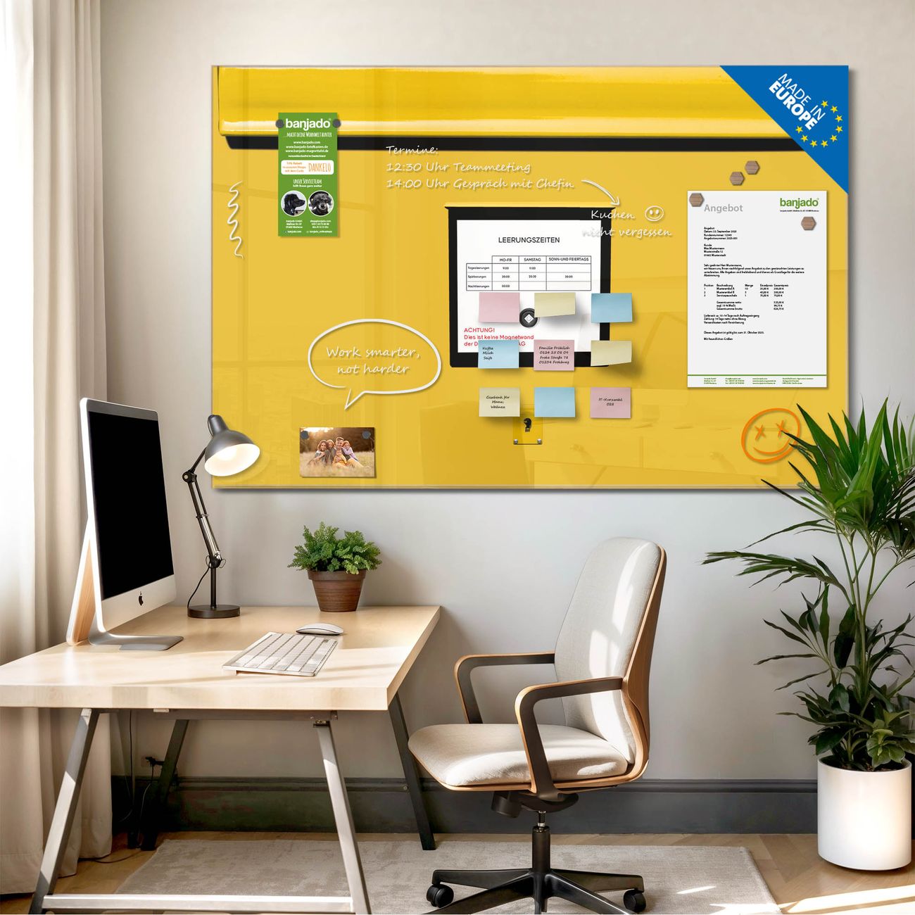 Jede Glas Magnettafel wird in unserer Werkstatt von Hand gefertigt und sorgfältig geprüft. So erhalten Sie ein echtes Qualitätsprodukt, das Funktion und Ästhetik perfekt vereint.?? Warum banjado?
