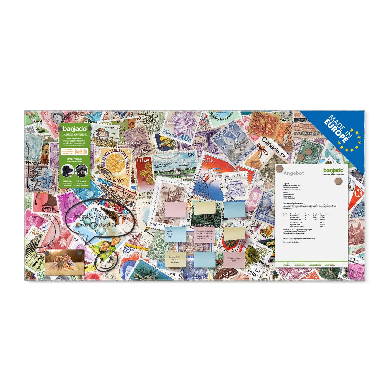 Glas Magnettafel im Querformat Motiv Briefmarken