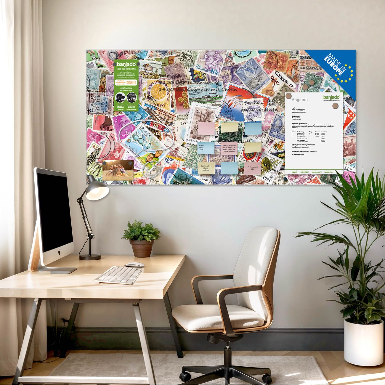 Die banjado Glas Magnettafel mit dem Motiv Motiv Briefmarken verbindet Funktionalität mit Stil. Sie ersetzt das Zettelchaos durch klare Strukturen und bringt dabei eine warme, natürliche Atmosphäre in Ihr Zuhause. Ob im Büro, in der Küche oder im Eingangsbereich - dieses Design-Board zieht Blicke an und sorgt für Ordnung mit Charakter.