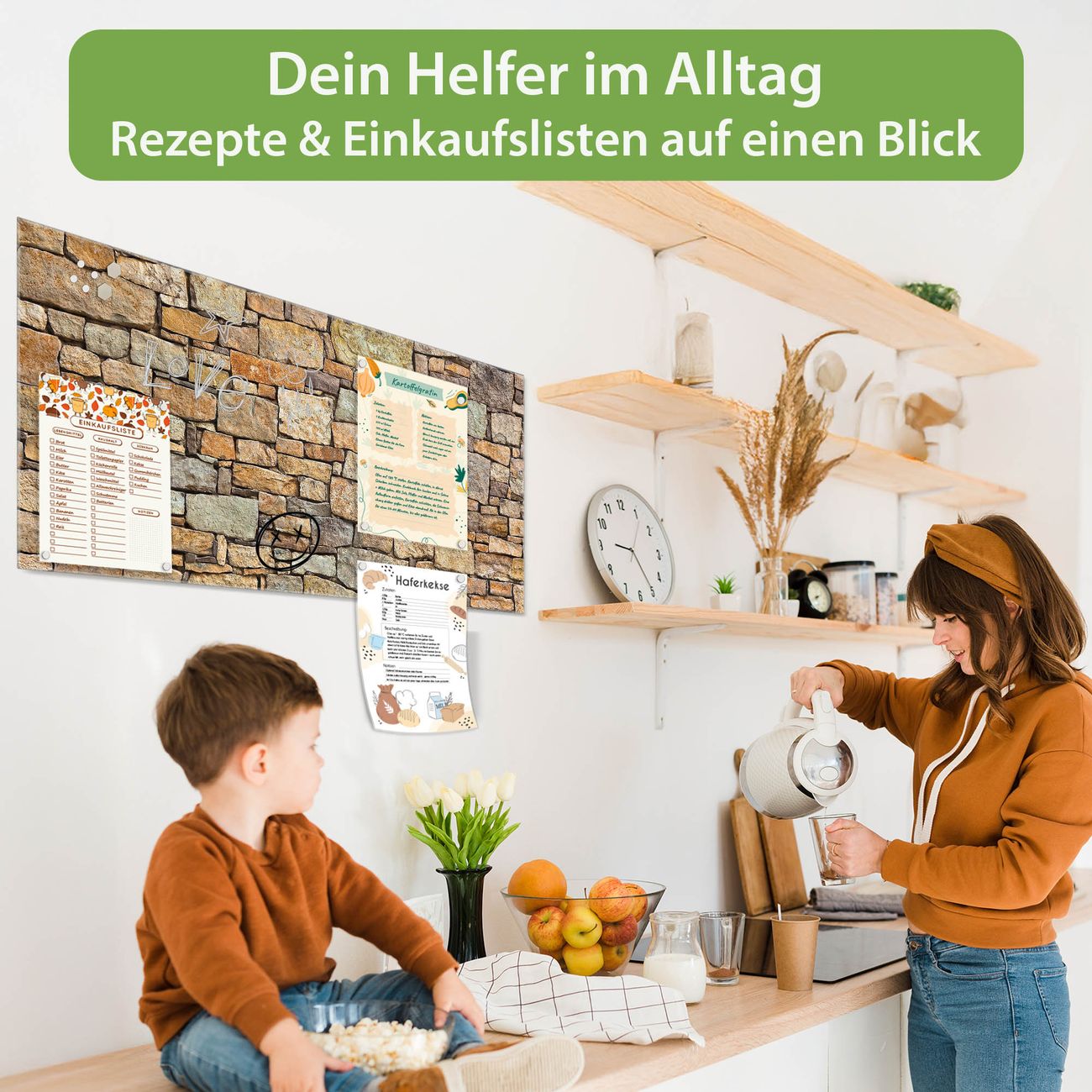 Ein Stück Design, das Ihren Alltag organisiert. Schreiben, heften, inspirieren - alles an einem Ort. Qualität, die man spürt. Montage leicht gemacht. Handwerk mit Herz - veredelt in Sachsen. Einzigartiges Design mit Motiv Motiv Bruchsteinmauer Beschreibbare Glasoberfläche, leicht zu reinigen Starke Magnetkraft durch Stahlrückwand Inklusive 4 Neodym-Magneten Flexible Montageoptionen Handveredelt in Sachsen - Qualität, die bleibt