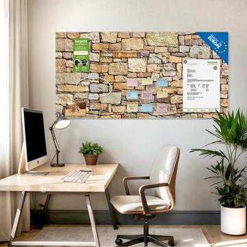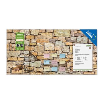 Material: 4mm Sicherheitsglas mit Metallrückwand Eigenschaften: beschreibbar, magnetisch, kratzfest Maße: 120x60x0,6cm, 10,80kg schwer Motiv Nummer 12137 Bruchsteinmauer Zubehör: inklusive 4 Neodym-Magnete