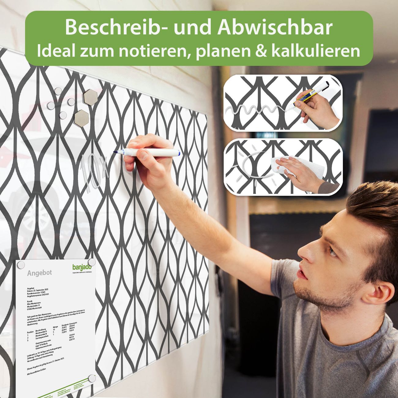 Bitte beachten Sie, dass ausschliessliche spezielle Magnete an der Glastafel haften. Wir empfehlen banjado Neodym Magnete, diese sind durch uns auf Wirksamkeit geprüft.