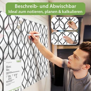 Auf der glatten Glasoberfläche lassen sich Termine, Rezepte oder Notizen ganz einfach mit Kreidestiften festhalten und rückstandslos entfernen. Starke Neodym-Magnete halten Ihre wichtigsten Erinnerungen sicher an Ort und Stelle. So entsteht Ihre ganz persönliche Ideenwand - jeden Tag neu.