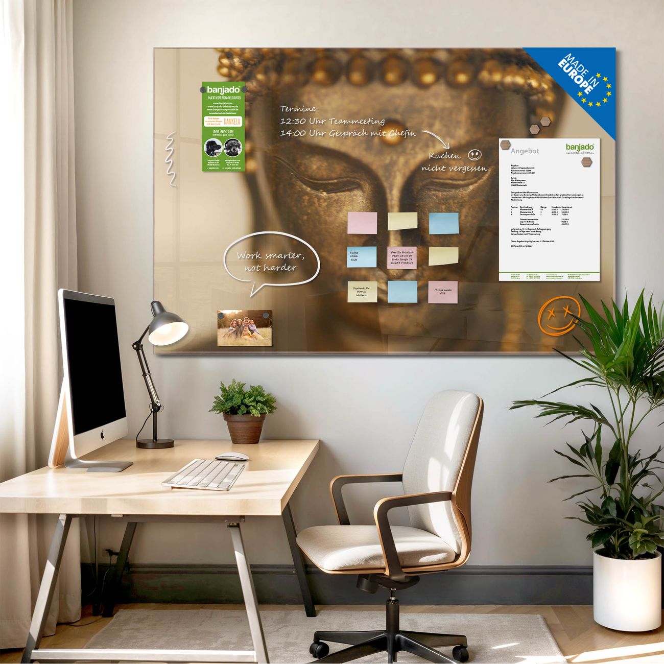 Glas Magnettafel im Querformat Motiv Buddha Gold