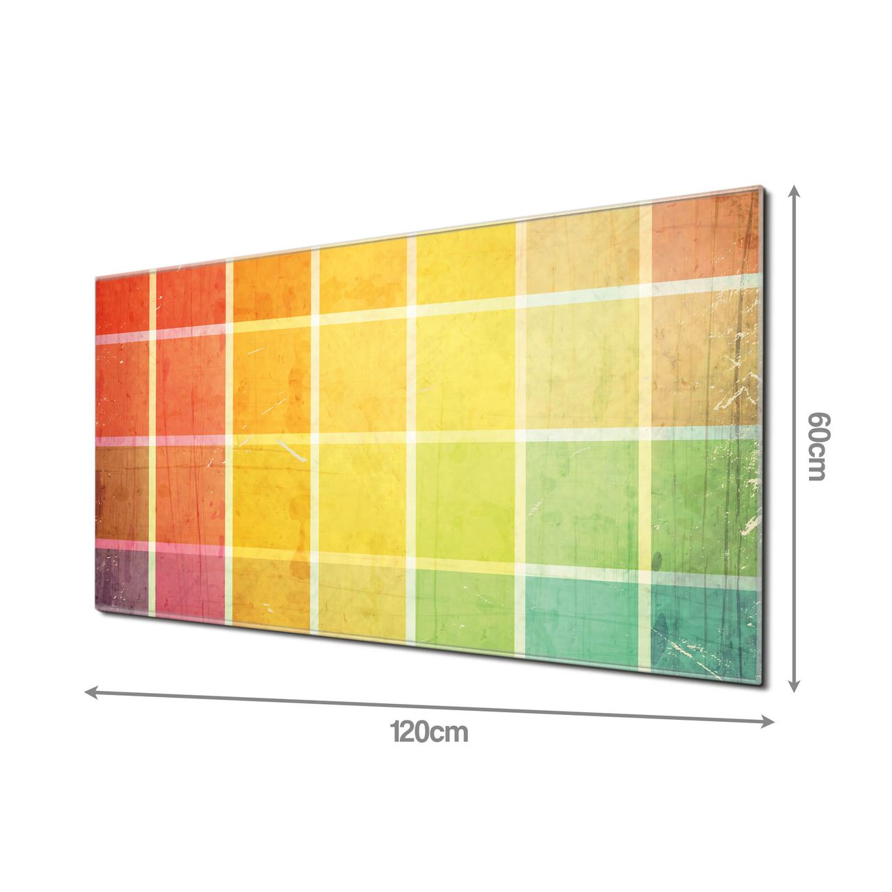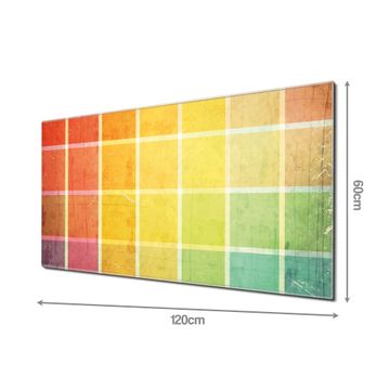 Material: 4mm Sicherheitsglas mit Metallrückwand Eigenschaften: beschreibbar, magnetisch, kratzfest Maße: 120x60x0,6cm, 10,80kg schwer Motiv Nummer 11329 Bunte Glasbausteine Zubehör: inklusive 4 Neodym-Magnete