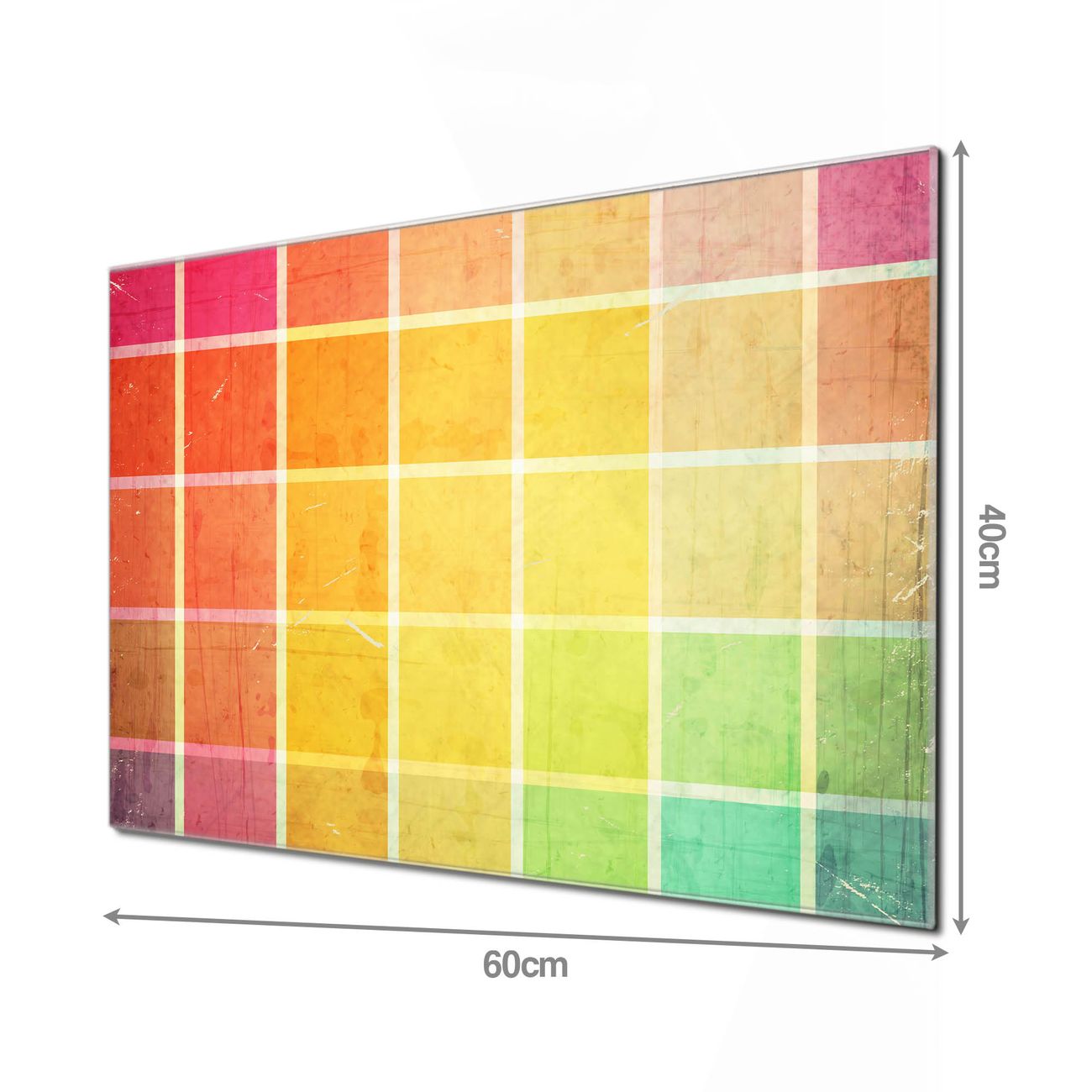 Material: 4mm Sicherheitsglas mit Metallrückwand Eigenschaften: beschreibbar, magnetisch, kratzfest Maße: 60x40x0,6cm, 3,6kg schwer Motiv Nummer 11329 Bunte Glasbausteine Zubehör: inklusive 4 Neodym-Magnete