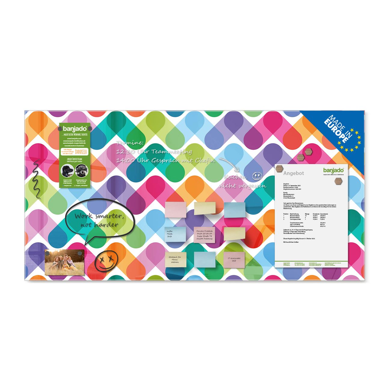 Die banjado Glas Magnettafel mit dem Motiv Motiv Bunte Ketten verbindet Funktionalität mit Stil. Sie ersetzt das Zettelchaos durch klare Strukturen und bringt dabei eine warme, natürliche Atmosphäre in Ihr Zuhause. Ob im Büro, in der Küche oder im Eingangsbereich - dieses Design-Board zieht Blicke an und sorgt für Ordnung mit Charakter.