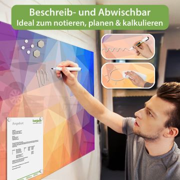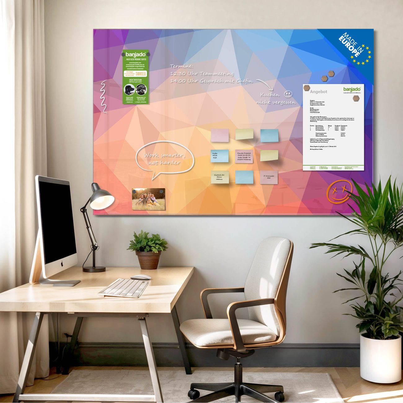 Die banjado Glas Magnettafel mit dem Motiv Motiv Bunte Kristalle verbindet Funktionalität mit Stil. Sie ersetzt das Zettelchaos durch klare Strukturen und bringt dabei eine warme, natürliche Atmosphäre in Ihr Zuhause. Ob im Büro, in der Küche oder im Eingangsbereich - dieses Design-Board zieht Blicke an und sorgt für Ordnung mit Charakter.