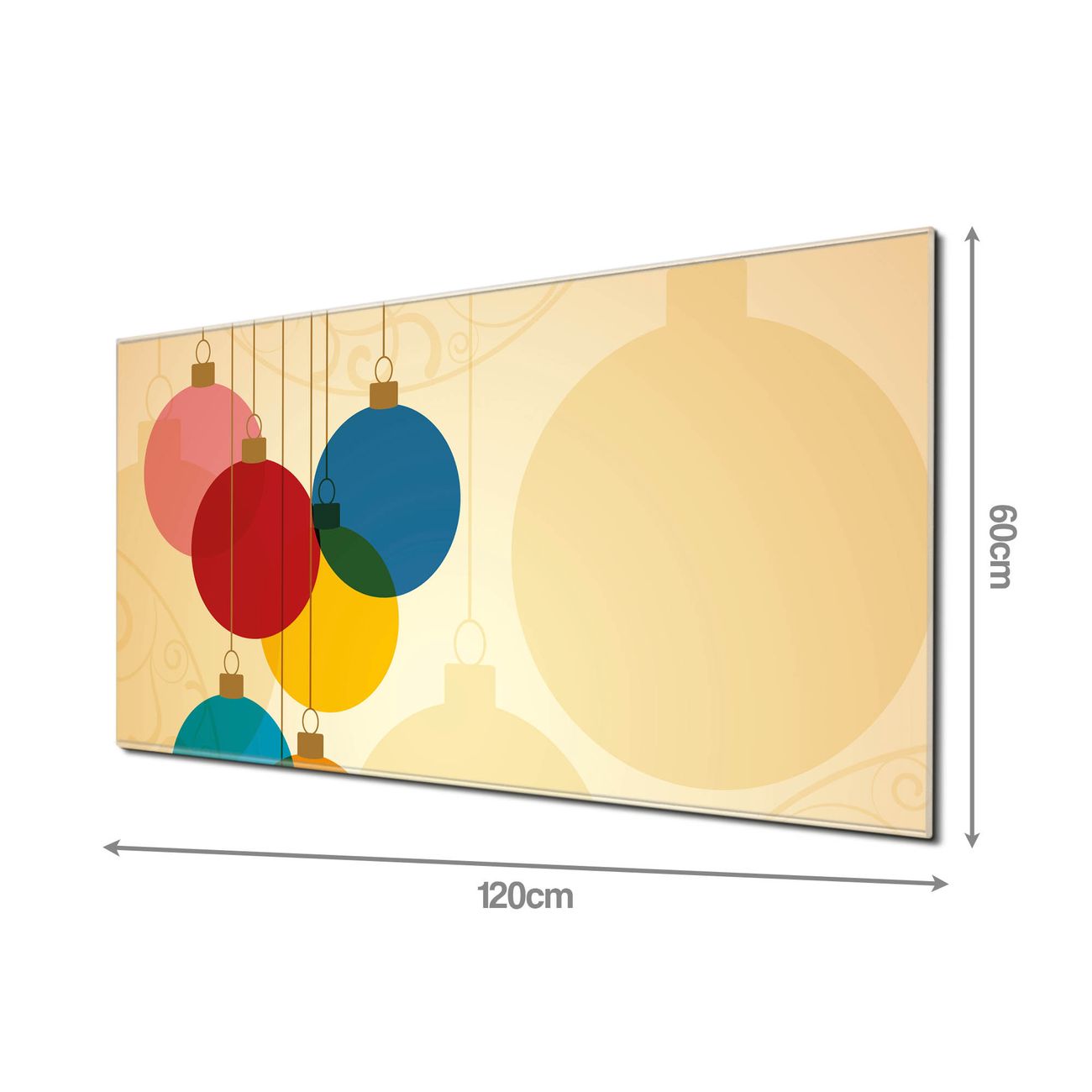 Material: 4mm Sicherheitsglas mit Metallrückwand Eigenschaften: beschreibbar, magnetisch, kratzfest Maße: 120x60x0,6cm, 10,80kg schwer Motiv Nummer 10840 Bunte Kugeln Zubehör: inklusive 4 Neodym-Magnete