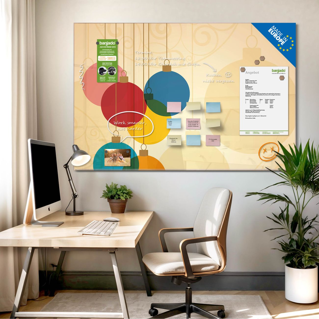 Die banjado Glas Magnettafel mit dem Motiv Motiv Bunte Kugeln verbindet Funktionalität mit Stil. Sie ersetzt das Zettelchaos durch klare Strukturen und bringt dabei eine warme, natürliche Atmosphäre in Ihr Zuhause. Ob im Büro, in der Küche oder im Eingangsbereich - dieses Design-Board zieht Blicke an und sorgt für Ordnung mit Charakter.
